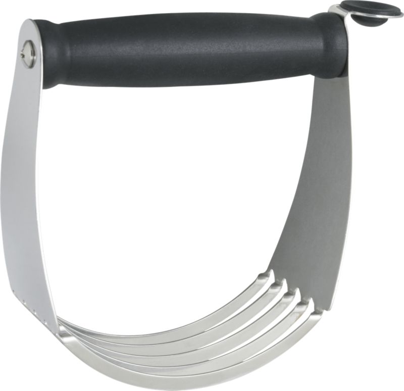 Above is a picture of the infamous pastry blender. They are relatively cheap and can be bought for between $5 and $15 dollars. Their function is essentially to "cut in butter" by blending a solid fat with flour to create a flaky dough. In a recipe in which one "cuts in butter", the butter or fat ingredient (lard, etc) first and foremost must be cold. The pastry blender then acts like a knife in slicing the butter into small pieces. When baked, the dough then become flaky. So this technique is ideal for scones, biscuits and other various pastry doughs. It is also often used for pie crusts. If you choose to not purchase a pastry blender (like myself), you can use a fork or two knifes to achieve the same effect. However, be aware that this particular method takes a lot longer!